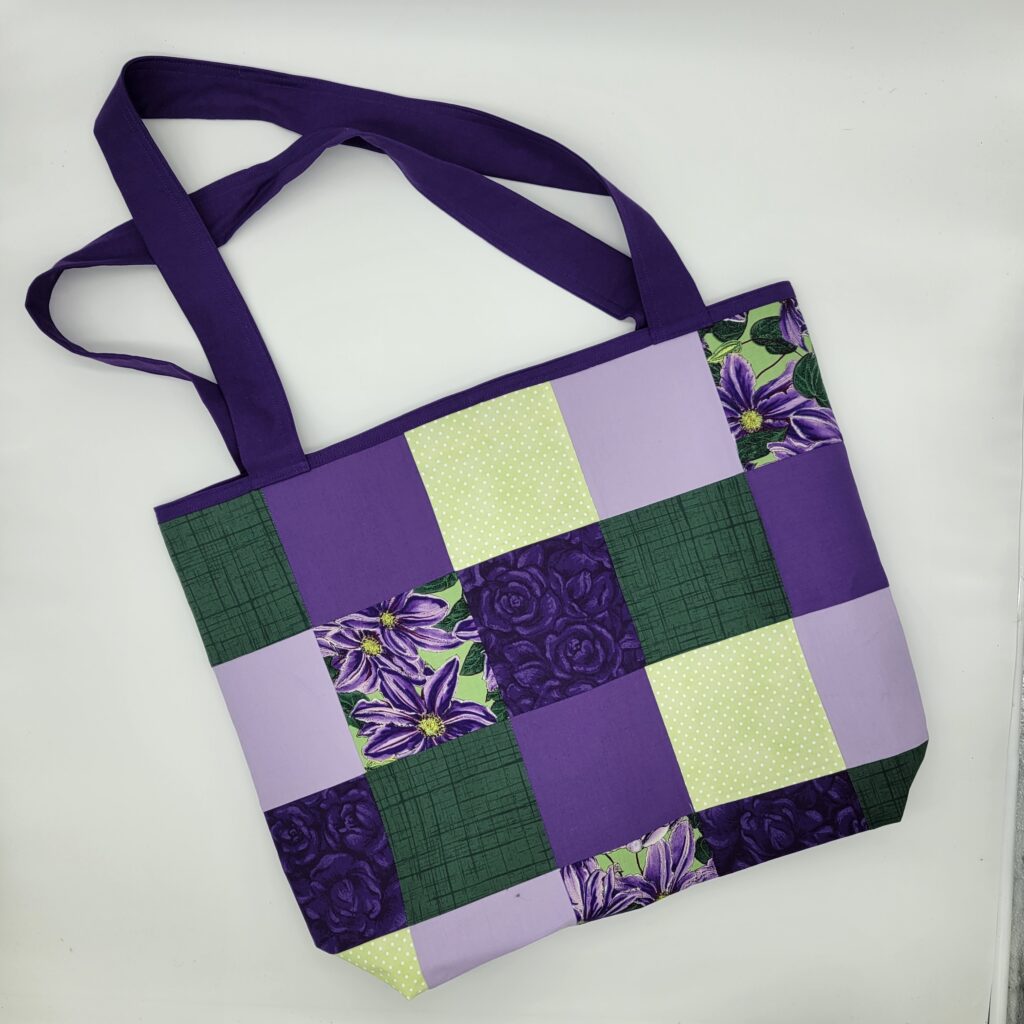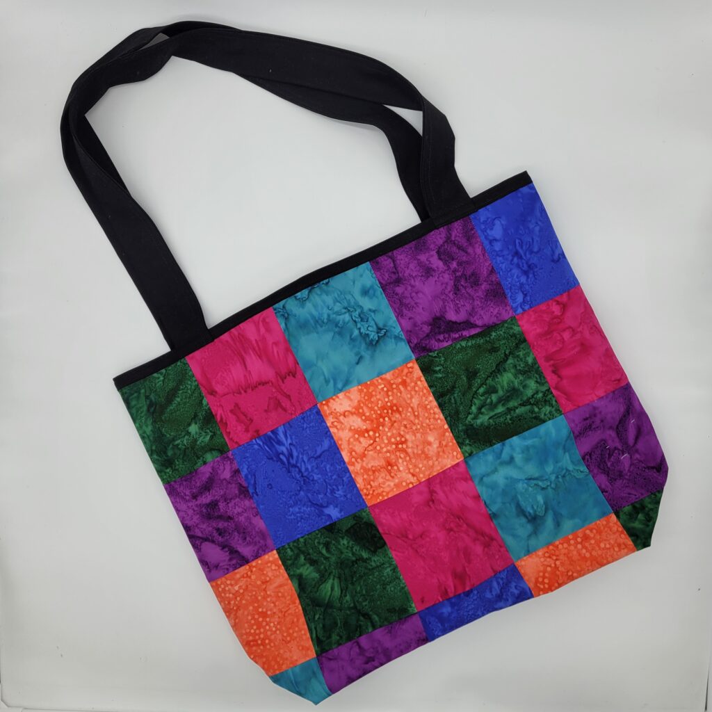 These large tote bags have a one-of-a-kind cotton exterior in stunning color combinations. The patchwork designs are never duplicated, so your bag will truly be unique!
